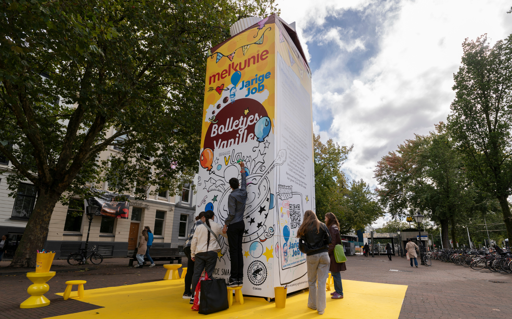 In de maand september worden de meeste verjaardagen gevierd. Gemiddeld zijn er 42.700 Nederlanders per dag jarig deze maand. 30 september is de dag waarop de meeste mensen jarig zijn. Voor een grote groep kinderen die in armoede leeft is dit niet altijd een feestelijke dag. Daarom stond er afgelopen zaterdag in Rotterdam een zeven meter hoog limited edition Bolletjes Vanille vla-pak. Dit vla-pak is onderdeel van de nieuwe campagne van Stichting Jarige Job en Melkunie om verjaardagen meer kleur te geven en meer bewustwording te creëren voor kinderarmoede in Nederland.